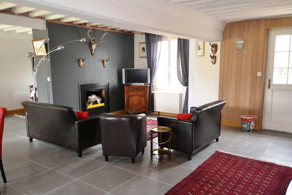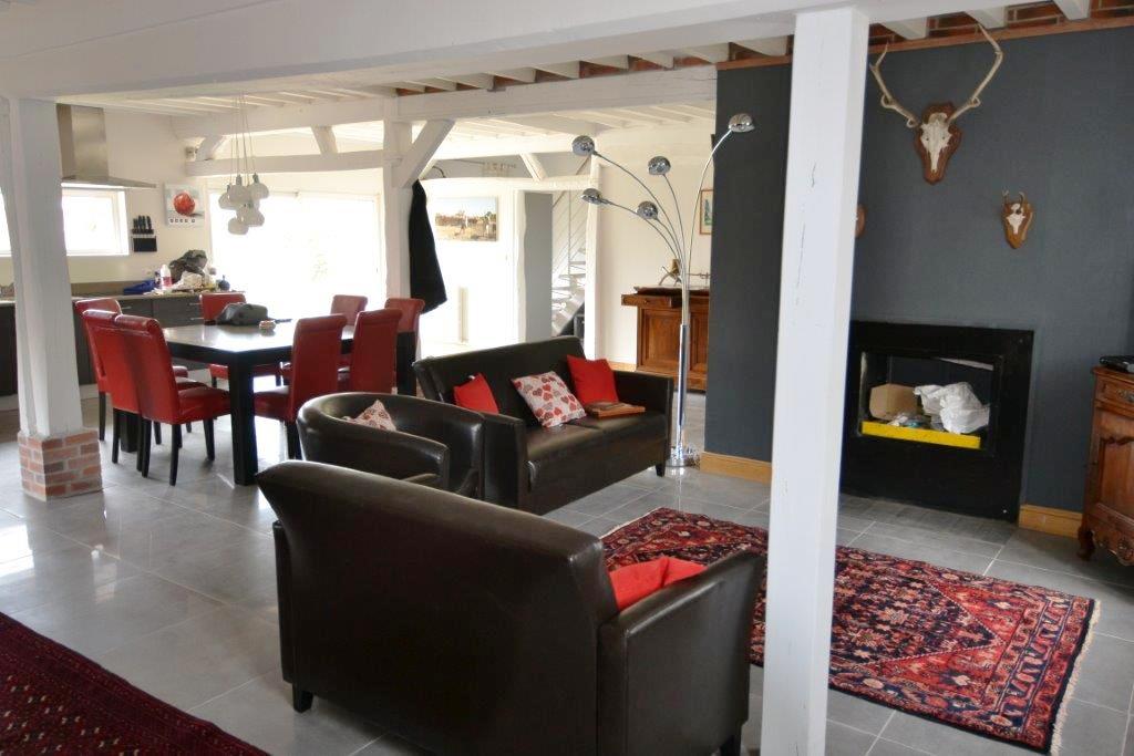 - Espace à vivre : séjour avec cheminée, salle à manger et cuisine ouverte équipée, d’un seul tenant – 82 m²